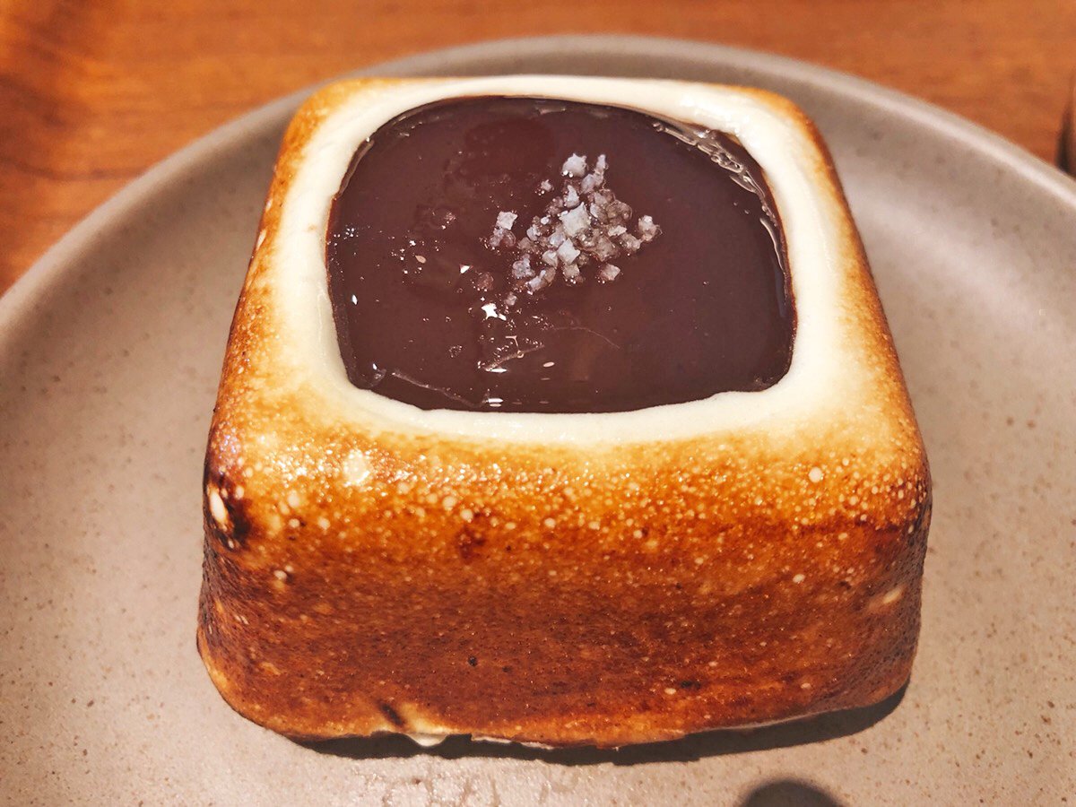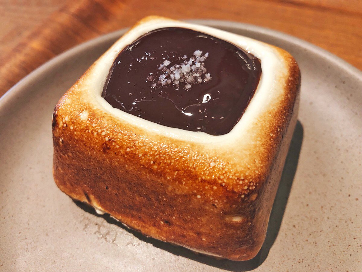 焼いたマシュマロの中にチョコレートガナッシュが入ったスモアを食べられるお店。