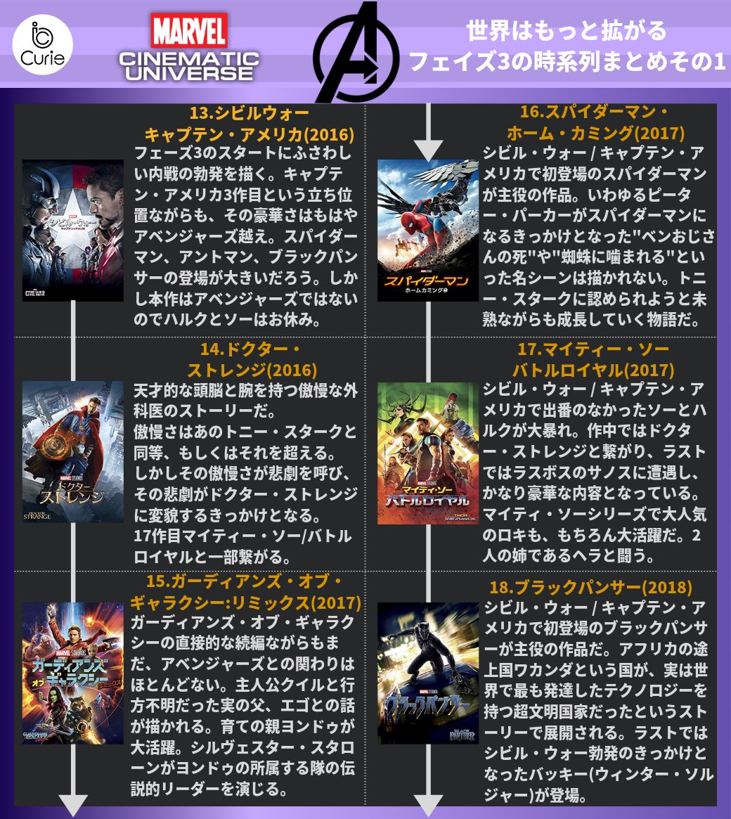 【MCUの順番】エンドゲーム後が描かれる待望のスパイダーマンがいよいよ公開!MCUは今作をもってフェーズ3が終了となります。しかし、物語はまだまだ序章です!MCUをもっといろんな人に観てもらうために、作品を順番にまとめました!