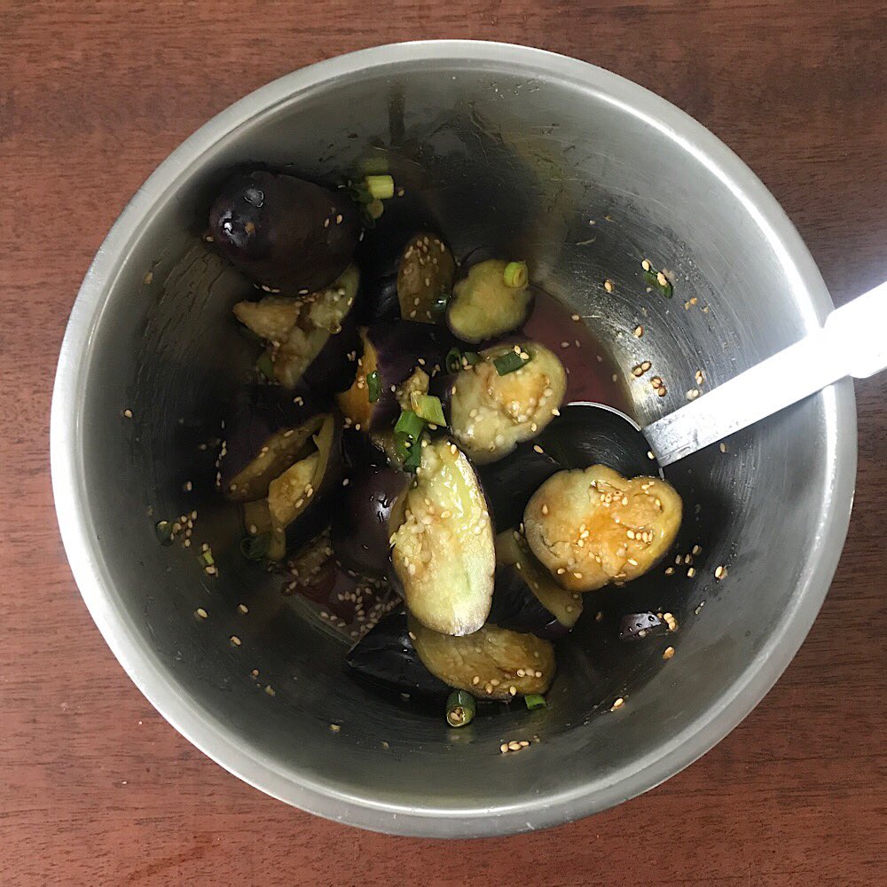 ②[砂糖、醤油各大さじ1と1/2、酢大さじ1、ごま油大さじ1/2、顆粒鶏ガラ、チューブにんにく、生姜各少々]で和え、あればネギとゴマを