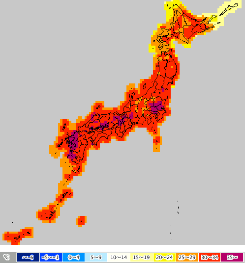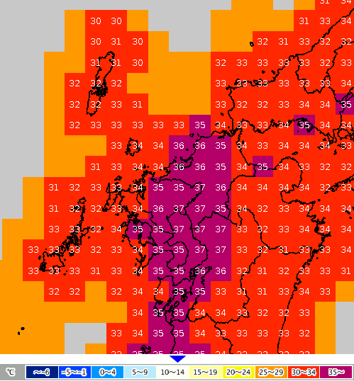 今日3日の最高気温は佐賀・久留米・日田・熊本38℃,熊谷・京都37℃,前橋・甲府・山形・岐阜・奈良・大阪・豊岡・鳥取・岡山・広島・山口・高松・福岡36℃,東京都心含め各地で35℃の猛暑日予報.いくら屈強な人間でも暑さには耐えられません.必ず適切な暑さ対策を!!