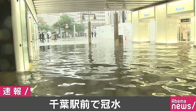 【大雨】千葉駅前で大規模冠水、県内ほぼ全域に土砂災害警戒情報