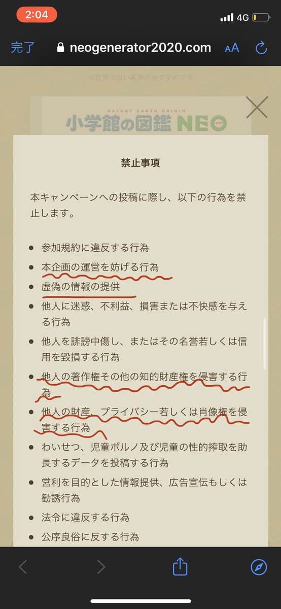 小学館の図鑑NEOメーカー、ちゃんと規約読んでからにした方がいいかも。
