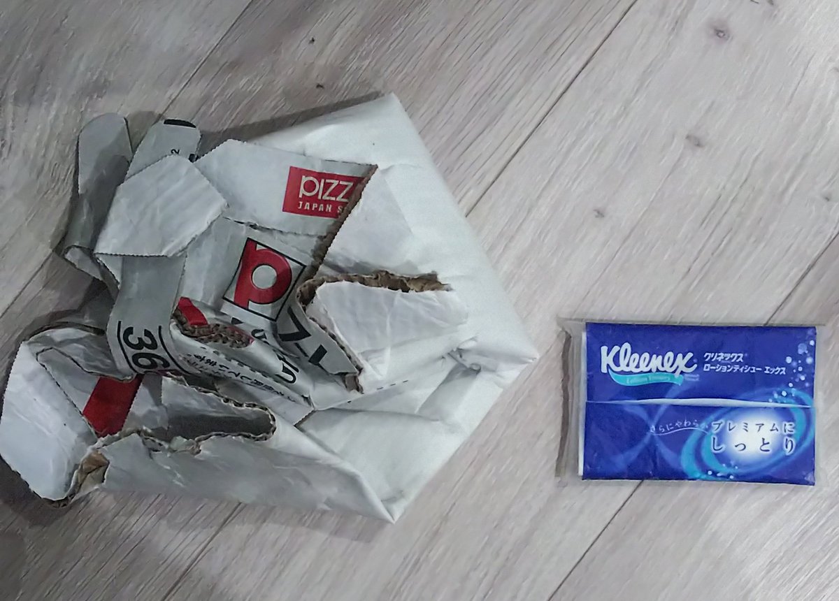 宅配ピザの巨大な箱、水で濡らしたらめっちゃちっちゃくなるって常識やったん?