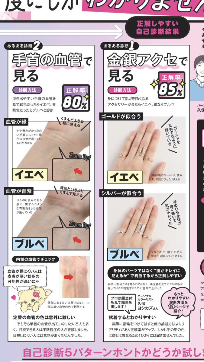 イエベ、ブルベの見分け方すごいわかりやすい!! pic.twitter.com/q7qduxgxM6