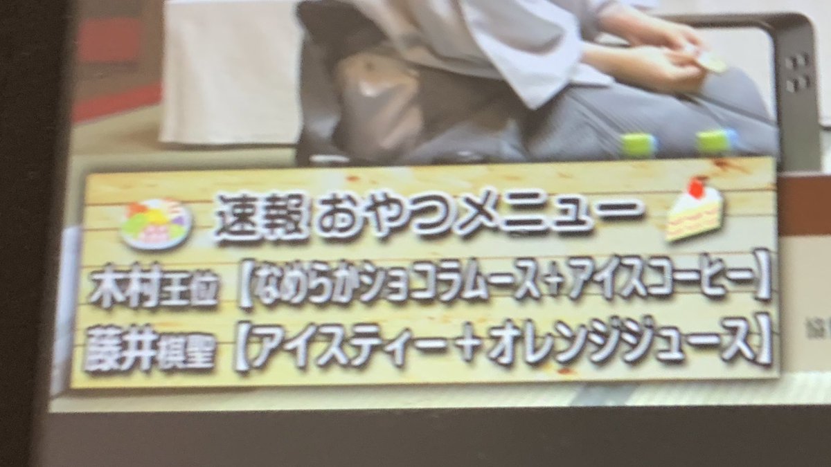 王位戦のおやつ、木村王位のなめらかショコラムースにアイスコーヒーという定跡に対して藤井棋聖のアイスティーにオレンジジュースという意表を突く一手が炸裂してる