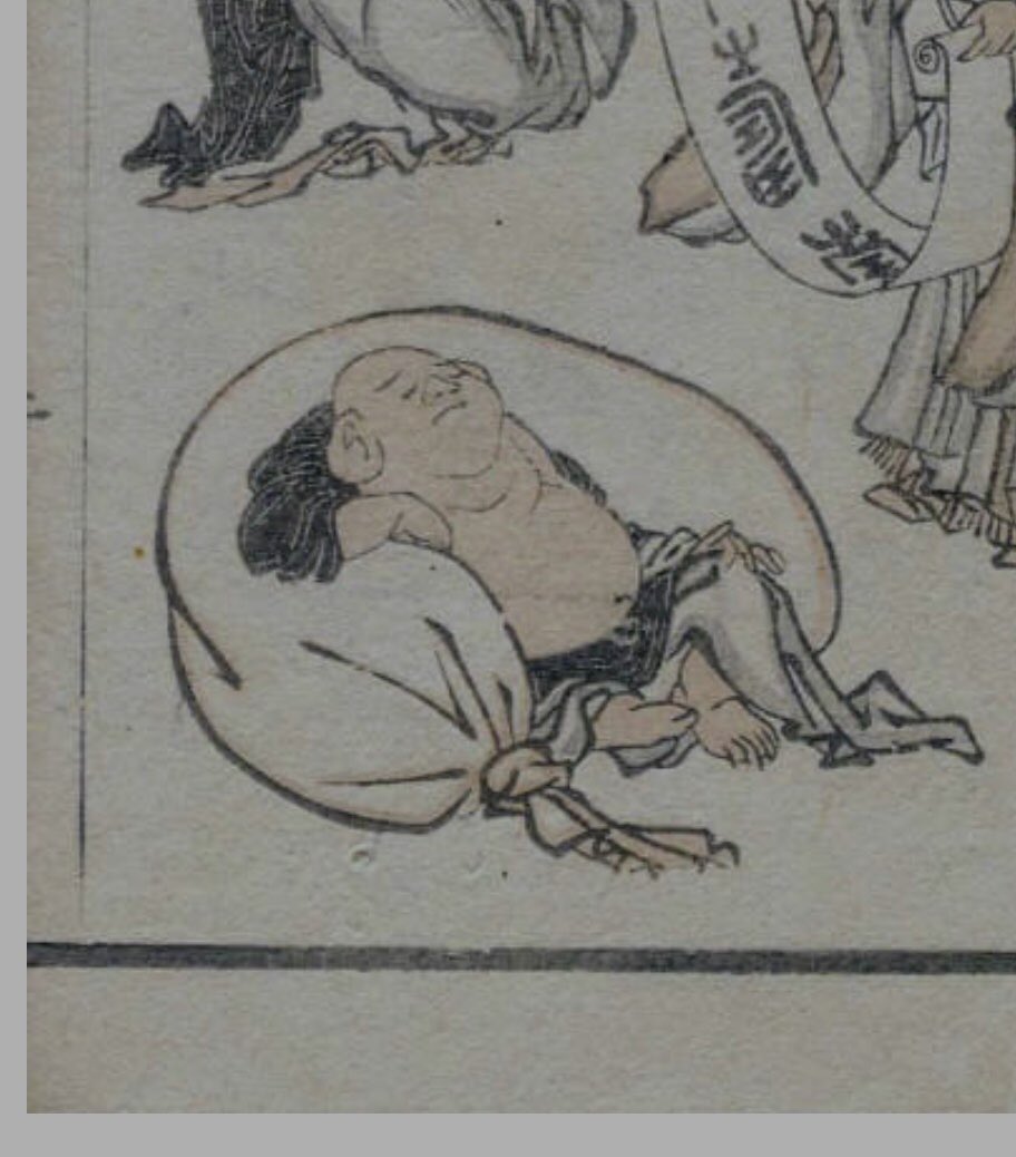 葛飾北斎が描いた北斎漫画(初編 1814年)を見ていたら無印クッションで廃人になる人の先祖がいました。 pic.twitter.com/1V8rCH8KAL