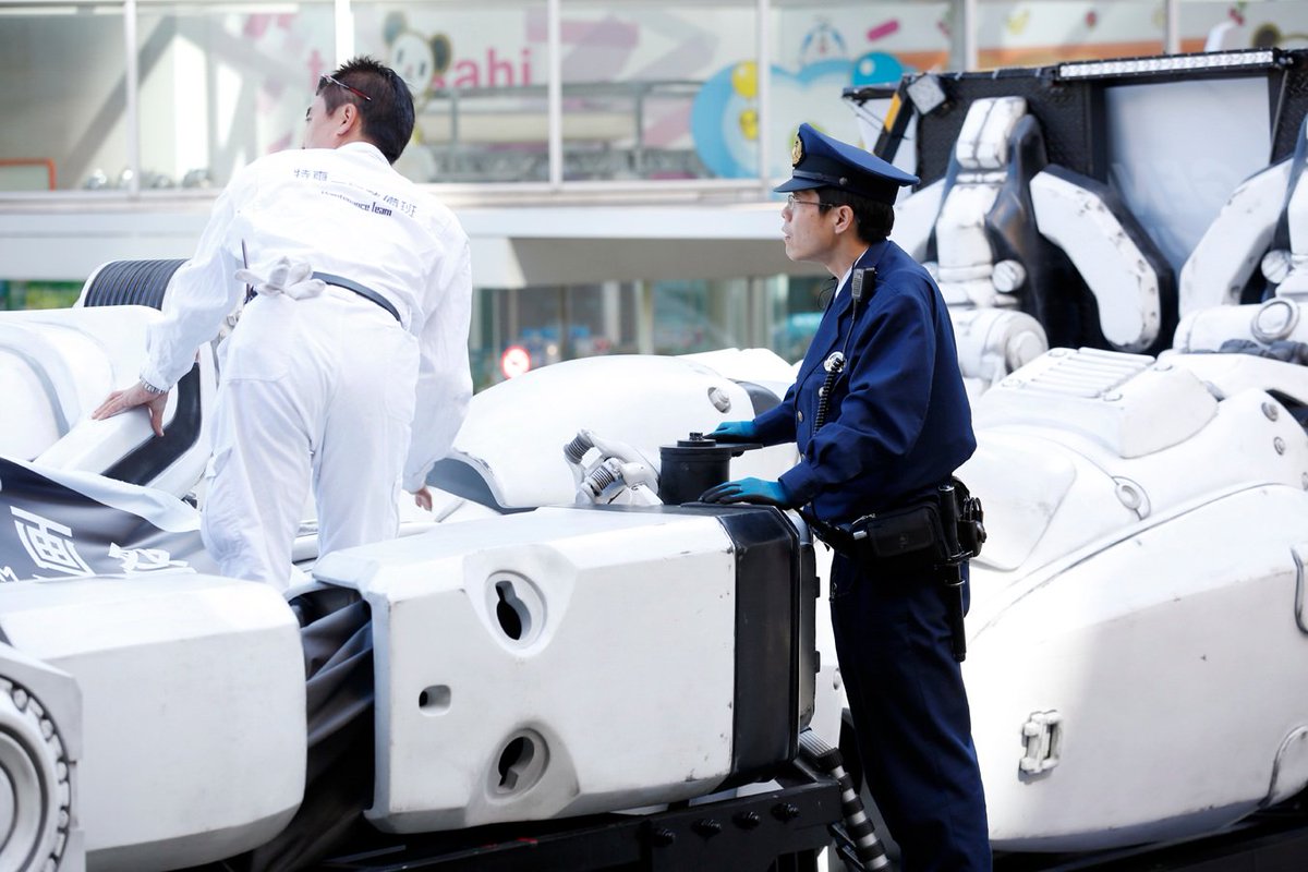 アホが上に登って手首だかを壊しちゃって、器物損壊事件になって本物の警官が来ちゃった1/1イングラム。白いツナギはイベントスタッフだけど、警官は全部本物w #他の人が持っていないような写真を晒せ pic.twitter.com/H11wlyPe9B
